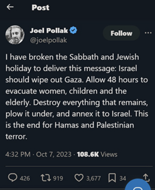 Remember when Elon pretended not to know all of these major Jews were calling for genocide in Gaza? Jews are exempt from the rules. Elon banned Angelo Gage for saying “we have to destroy these demons,” saying it was an illegal incitement to genocide Jews, and everyone was like “yeah but the Jews are saying the same thing tho?”