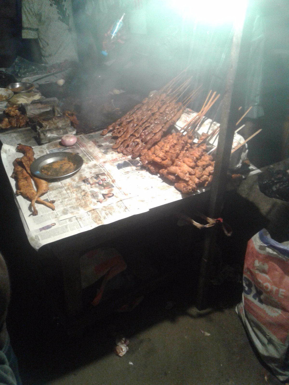 The food is good and paleo. This is suya, a heavily spiced kebab style food you can find late at night.