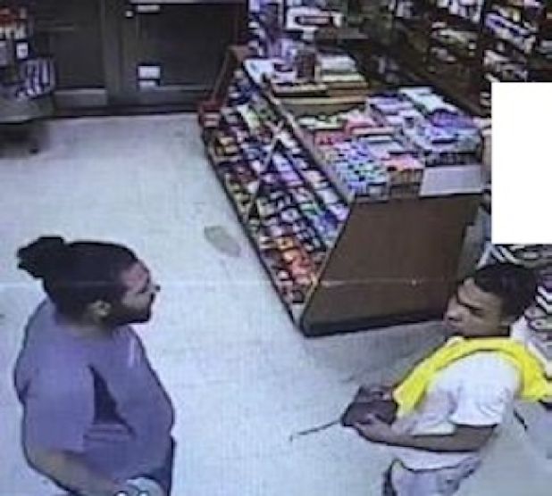 The first suspect is described by police as a male, Black or Hispanic with a ponytail, heavy set and last seen wearing a blue t-shirt, two-tone shorts and black sneakers. The second suspect is described as a male, Black or Hispanic; medium build and last seen wearing a white t-shirt, white hat, white baseball cap, holding a yellow t-shirt and carrying a purse.