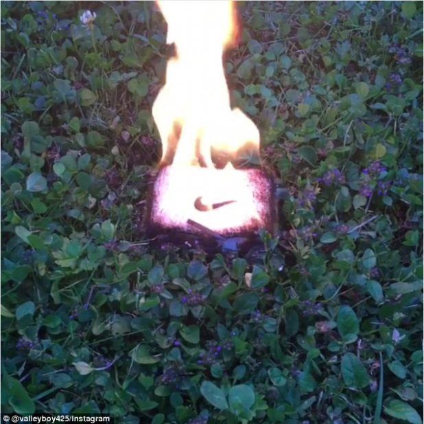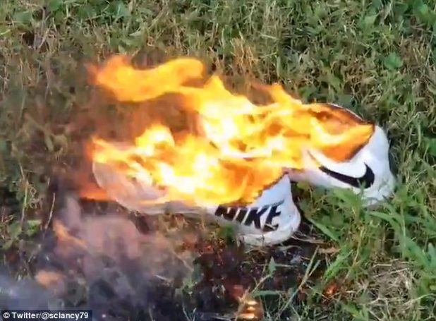 Instagram user David Johnston shared a video of a Nike wristband on fire captioning it: ‘This is how I feel about Nike selecting Colin Kaepernick as the new face of the company’s ‘Just Do It’ campaign.’