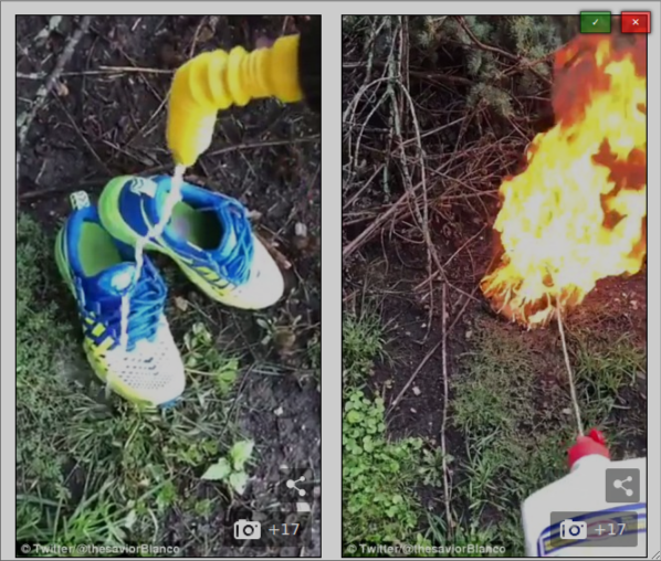 A Twitter user who goes by the name Sean Clancy posted video showing a pair of Nike sneakers being set on fire.