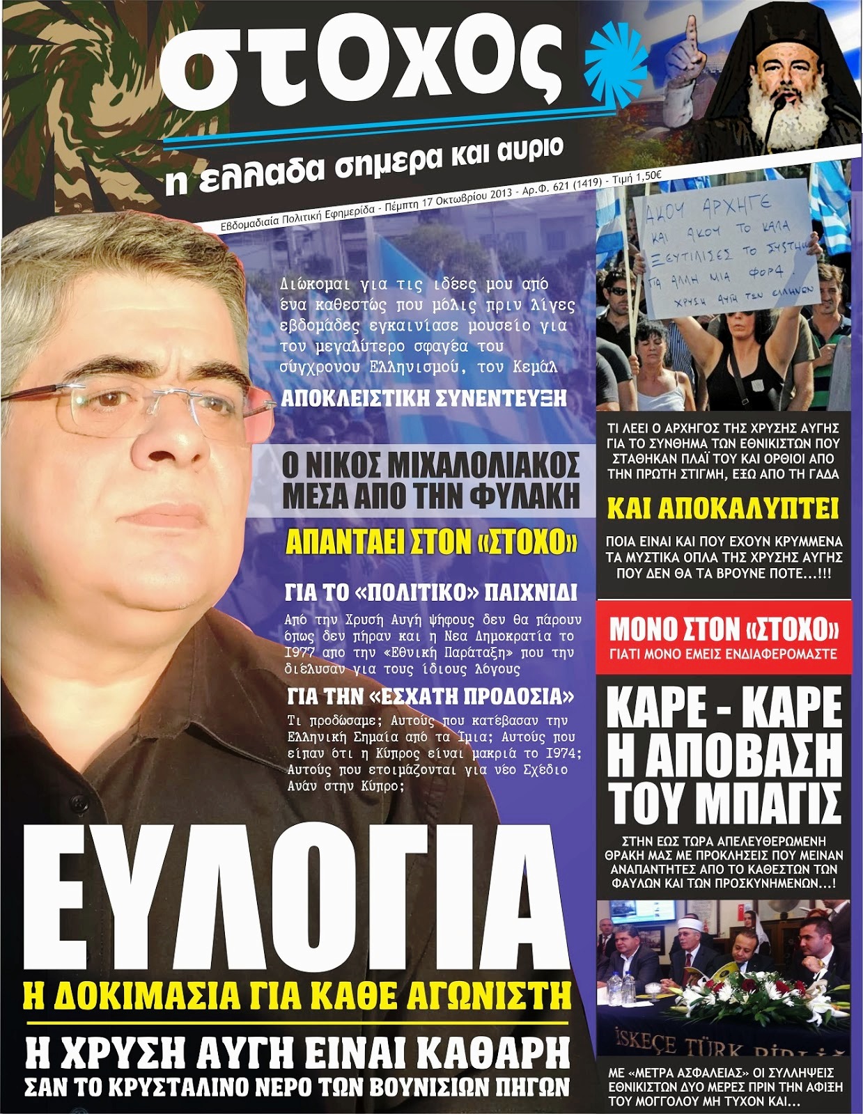 – The big weapon of the Golden Dawn is that you do not sell nor buy. It is the belief in the idea, the belief in Greece and that God is on our side and we are unwavering. The Golden Dawn started like a small flame that was once just in the town squares as you mentioned, from the 200 and 300 hardcore nationalists, today it has become an unstoppable force that has spread across the country. The future is ours! Warm greetings to the militant leaders of “Stoxos” and to all readers of this patriotic newspaper.