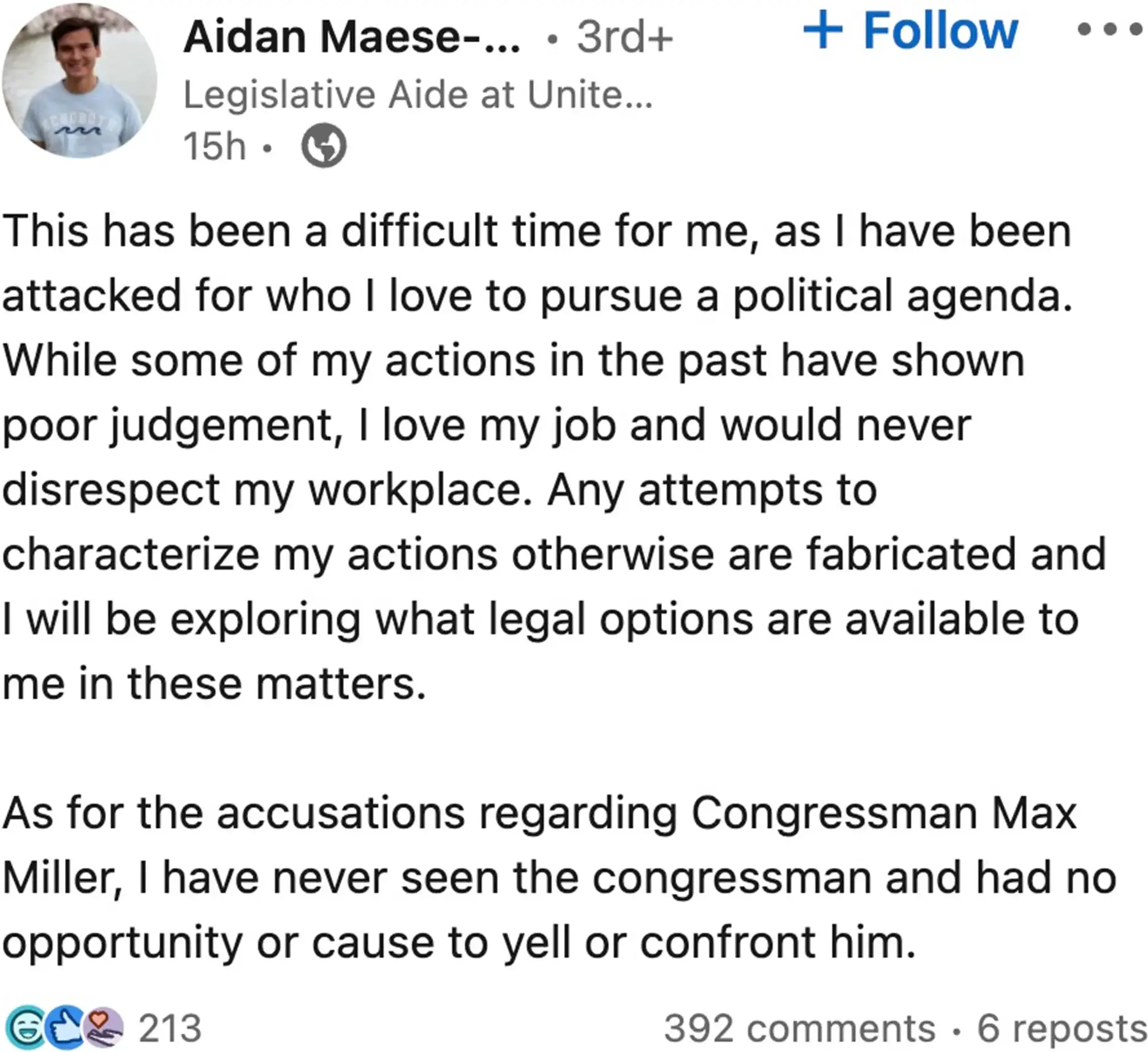 Maese-Czeropski invoked his Fifth Amendment right against self-incrimination during the investigation, according to Capitol Police.
