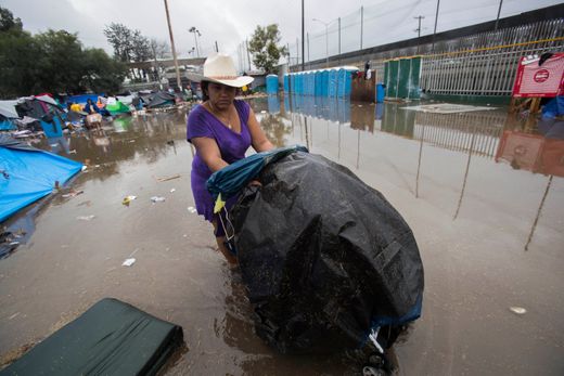 As heavy downpours Thursday night flooded the already unsanitary encampment in Tijuana’s northern side where thousands of Central American asylum seekers are being housed, authorities began moving small groups to a new government-run indoor shelter, 20km east of the US-Mexico border.