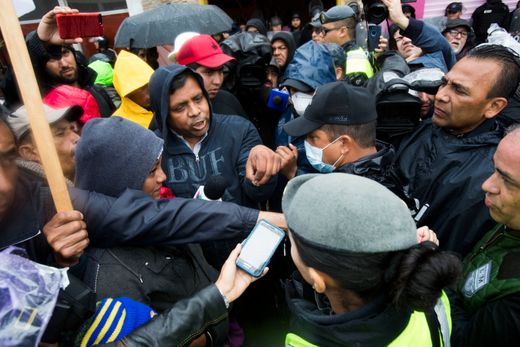 Mirna Contreras was sitting in her tent waiting out the rain on Thursday afternoon. She said she was sad because she didn’t have enough money to rent a room in a local hotel.