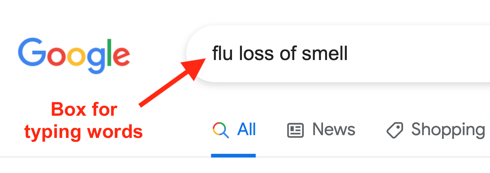 Step two: Type the word “flu,” alongside the alleged new symptom or condition supposedly caused by “covid-19.”