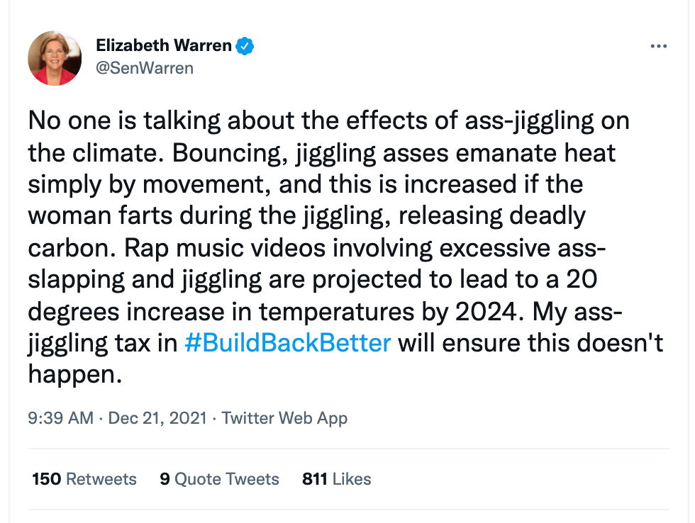 Perhaps unsurprisingly, Senator Elizabeth Warren injected herself into the controversy to warn of impending climate change.