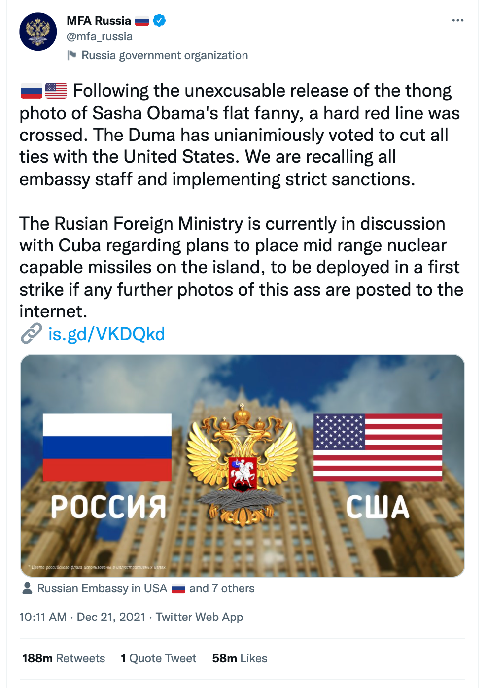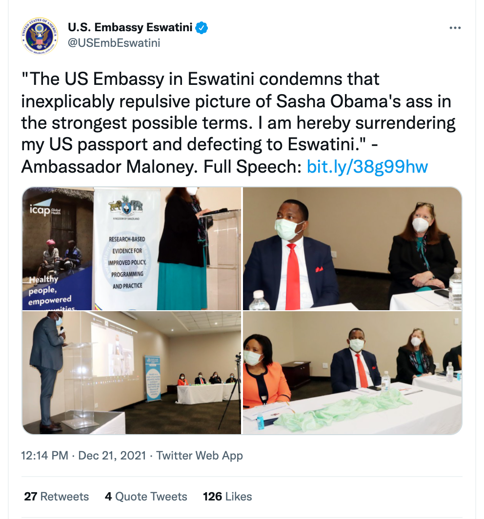 Shockingly, some of the US Embassies stationed in other countries posted outrage, suggesting that the US embassy staff may defect to the nation they are stationed in as a result of the ass photo.
