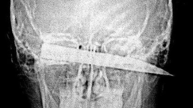 Prosecutor Alan Kent QC said the teenager was “lucky” to survive after the blade was completely buried in his head with the tip poking out the other side.