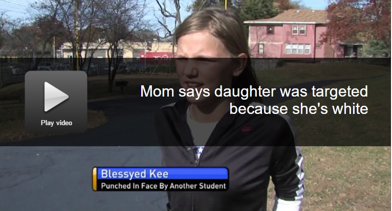 Whenever you hear anything about white privilege being taught, think of this story of a 12-year-old girl who has been bullied/attacked by non-whites precisely because of the color of her skin; she has been judged by her non-white attackers as deserving of the attack entirely due to not only racial hate, but because these non-whites have actually learned to hate white people from their public school lesson plans (which blame white people for the failures of black/brown people to advance).