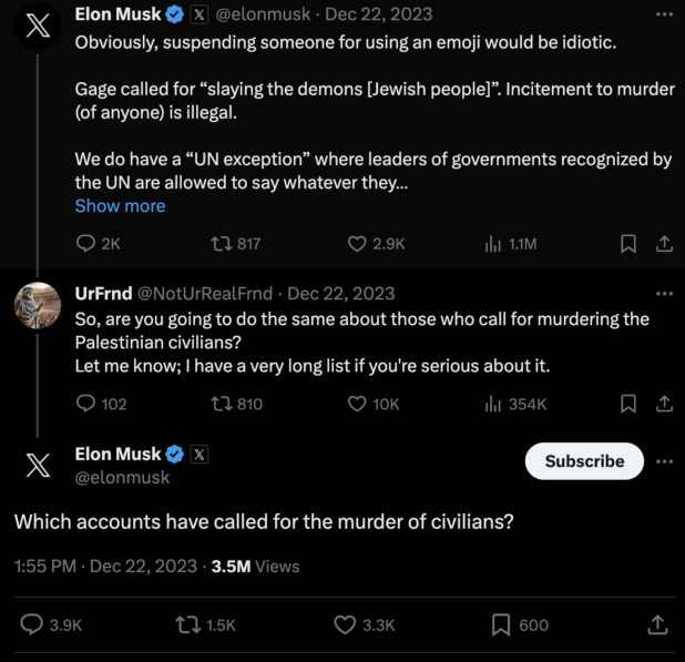 Speaking of the Fire Extinguisher Guy (whose surname is Braun), the actual biggest story in terms of my interests was Elon going full-Jew and banning people for posting the emoji. He’s saying no Jews are on Twitter calling for the mass killing of Palestinians and claiming saying “killing demons” is illegal speech. This is something I’m going to have to write up in full, but he pretended to be unaware that Jews and their goonies are calling for genocide in Gaza.