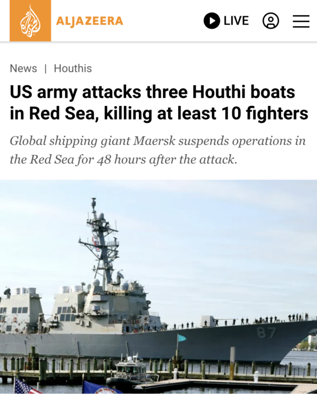 This was ostensibly a response to the Houthis of Yemen preventing the passage of ships bound for Israel through the Red Sea.