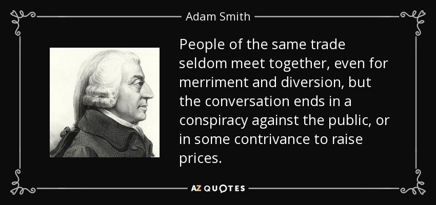 The point is: capitalism was defined by Adam Smith in “The Wealth of Nations” in 1776. All he really did was codify the system of free exchange that had existed since the advent of currency – while also putting barriers on it, and defining the interaction between the economy and state. He said that it was of key importance that the government prevent monopolies, or capitalism could not function. He said the biggest threat was the government colluding with industry leaders to create monopolies that function in concert with the government.