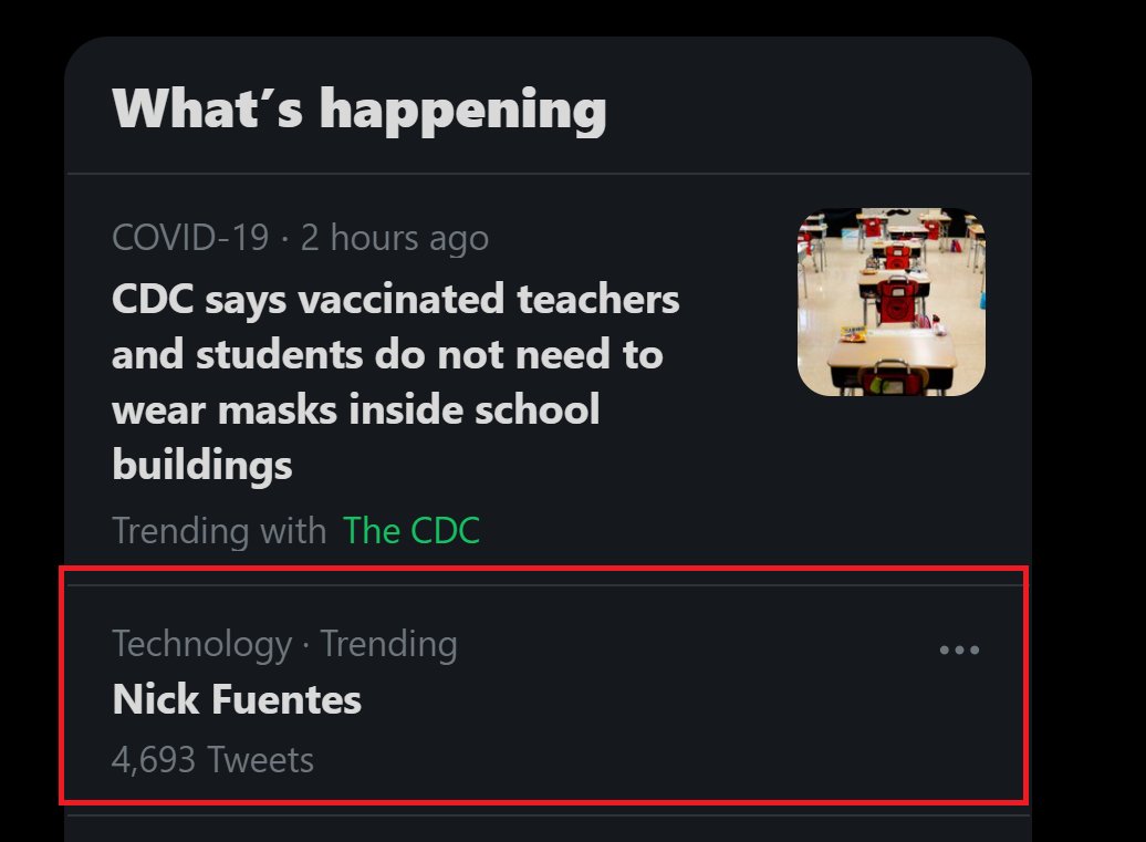 After the ban, “Nick Fuentes” was trending on Twitter.