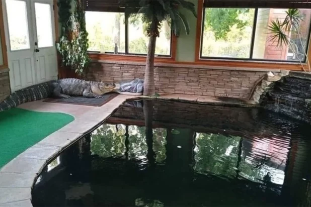 Cavallaro said he has owned Albert since the gator was just 2 months old, and after years of showing him in “educational shows” retired the aging beast in a large indoor pen. The luxurious pen came complete with a pond, specialized windows and lighting – which he attached to his house, he said.