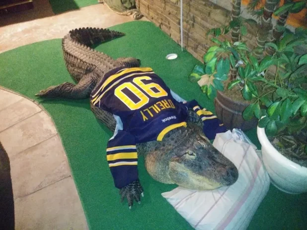 The DEC showed up at Cavallaro’s home in Hamburg, a suburb about 15 miles south of downtown Buffalo, on March 13 with a warrant alleging he had “allowed members of the public to get into the water to pet the unsecured alligator.”
