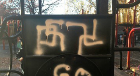Vandals spray-painted swastikas and the words ‘Go Trump’ on playground equipment at Adam Yauch Park in Brooklyn Heights.