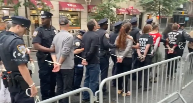 More than two dozen people wound up in cuffs as protesters with the notorious anti-Israel group Within Our Lifetime descended on Manhattan Thursday morning, cops said.