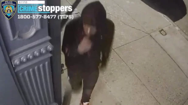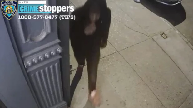Video released by the NYPD late Sunday shows the perv walking along the sidewalk, at first passing the entrance to the residence, but then doubling back when he spots someone entering — possibly the victim — before grabbing the door and walking inside.
