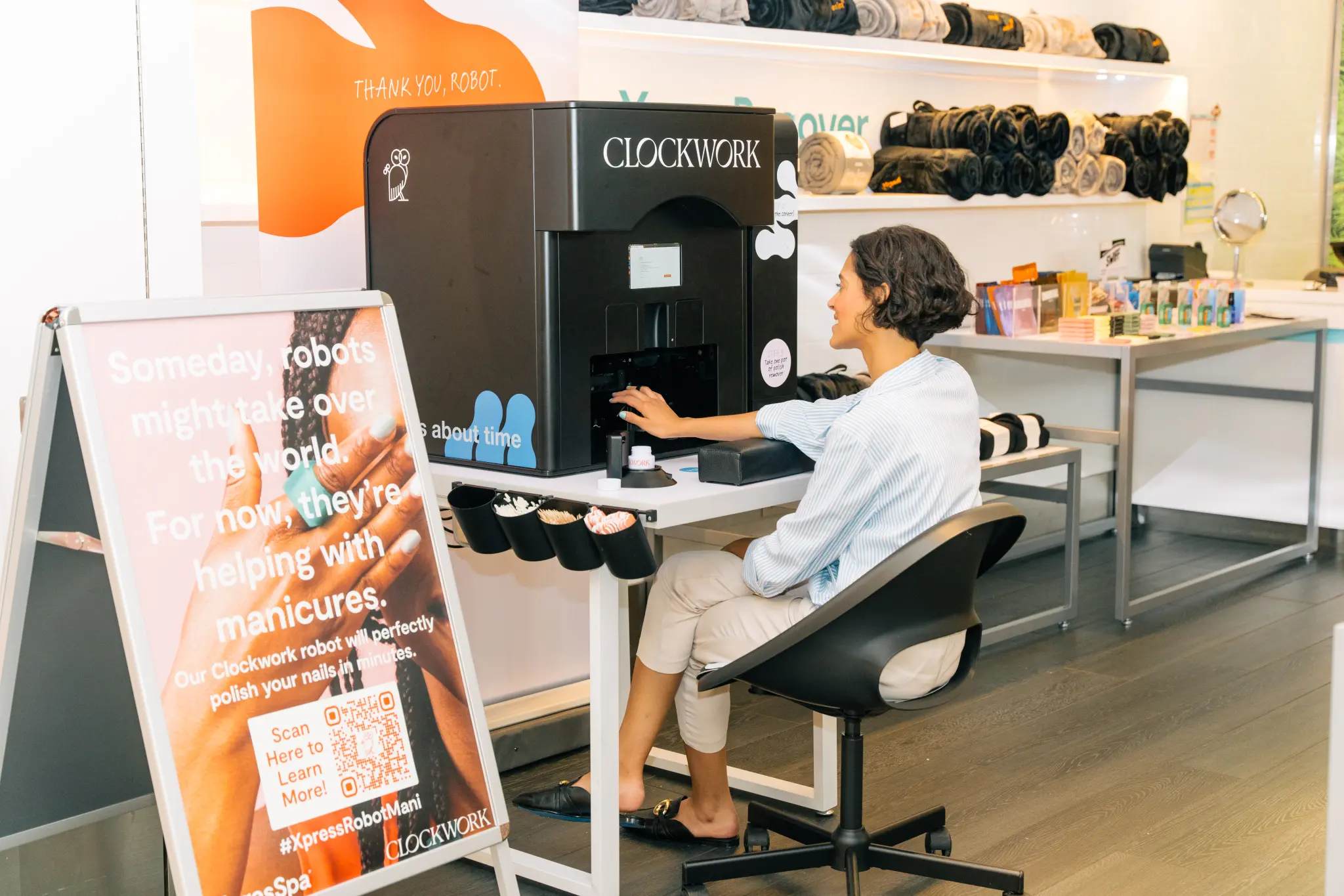 For a state-of-the-art manicure, stylistas in a hurry can insert a nail color cartridge — like loading a pod into a Nespresso machine — into a Clockwork machine, which uses both AI and 3D technology to outline the nail and fill in a professional-looking polish change in less time it takes some to choose a nail color.