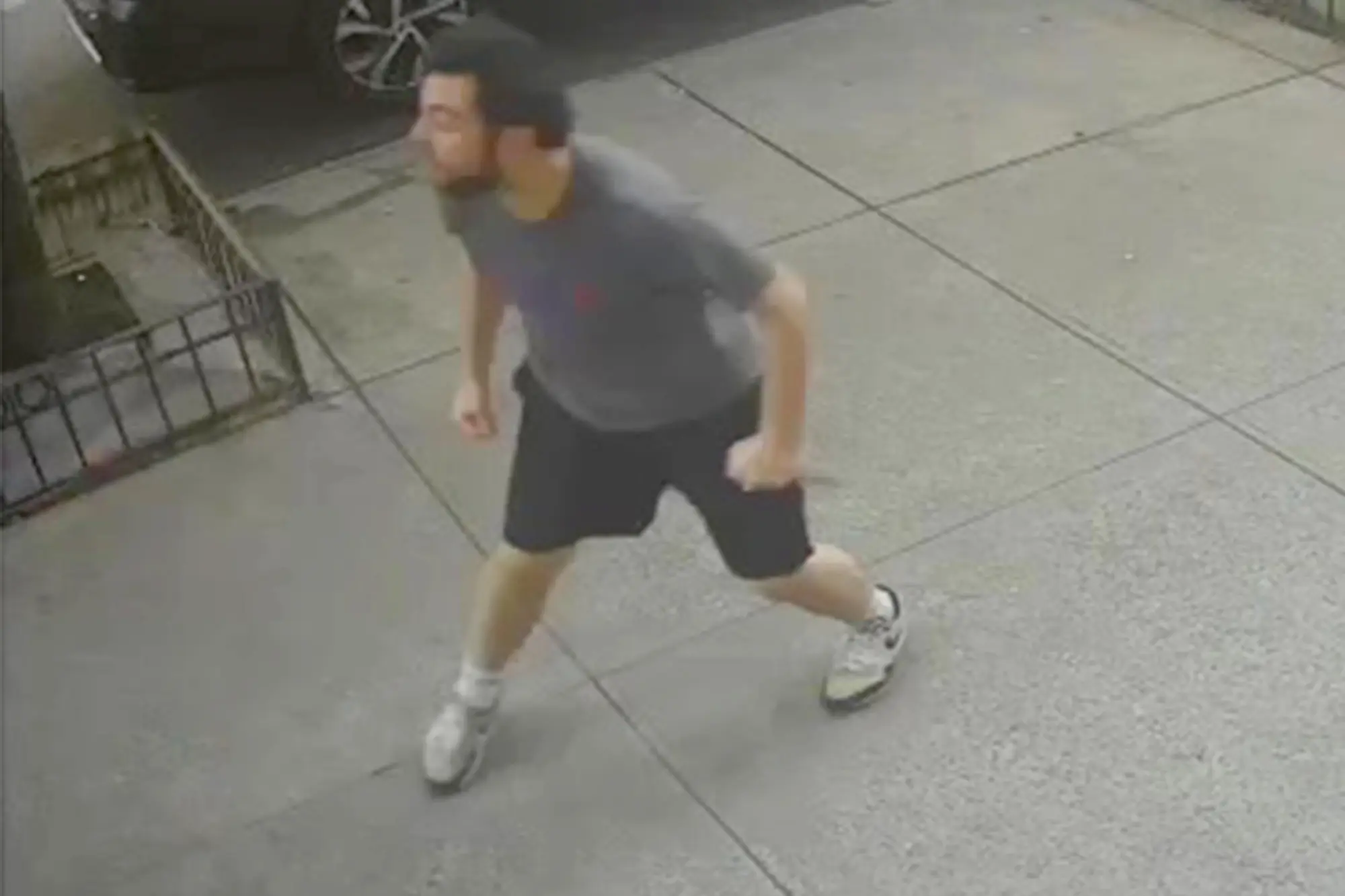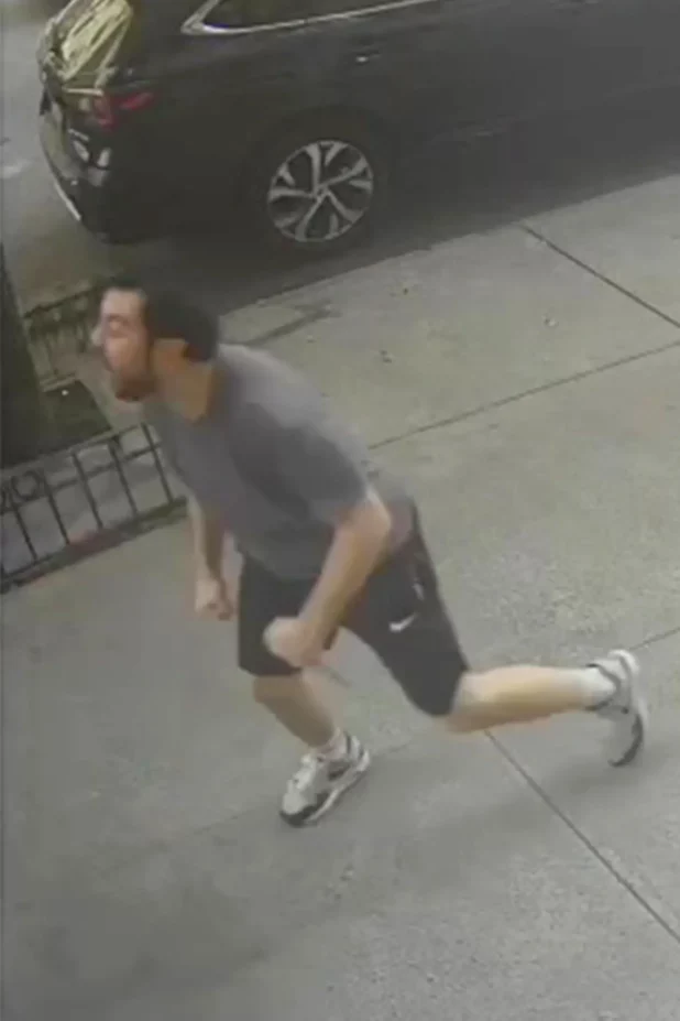 The screwball was caught on camera dashing after the 55-year-old victim on West 86th Street off Columbus Avenue around 10:40 a.m., before he came up from behind and slashed the man across the left ear and cheek, the sources said.