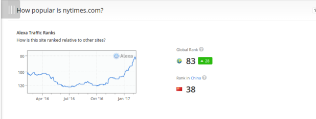 Just last week, this is what you would see if you went on Alexa and looked up the New York Time’s traffic metrics: