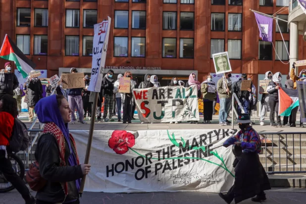 The NYU protesters, united under the NYU Palestine Solidarity Coalition, are demanding that the university disclose and divest “its finances and endowment from weapons manufacturers and companies with an interest in the ‘Israeli occupation.”