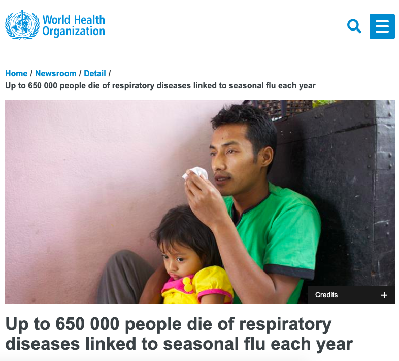 This death toll is the same as the annual average of global flu deaths, according to the World Health Organization.