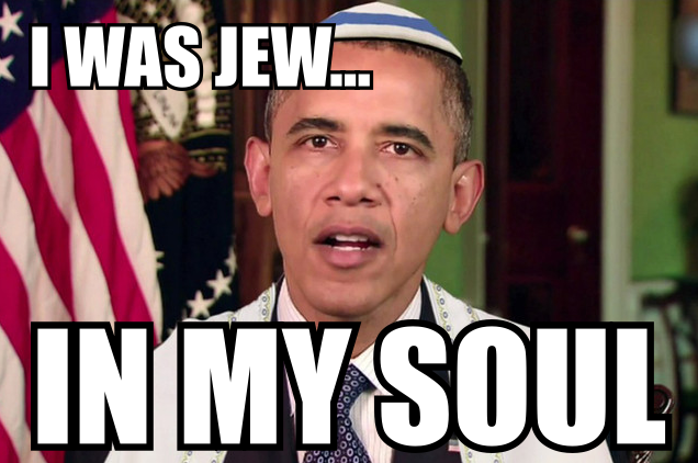 Barack Obama, the infamous monkey President of the United States, supposedly declared at the White House’s Hanukkah—or Chanukah, however the hell you spell it—celebration that he’s Jewish in his soul.