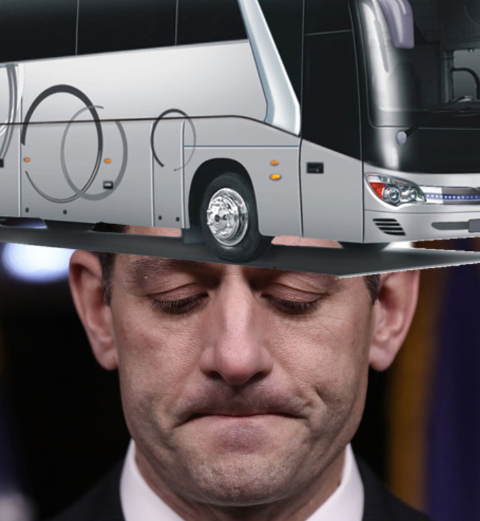 Btw, who let Paul Ryan out from under the bus? Because he was supposed to remain there.