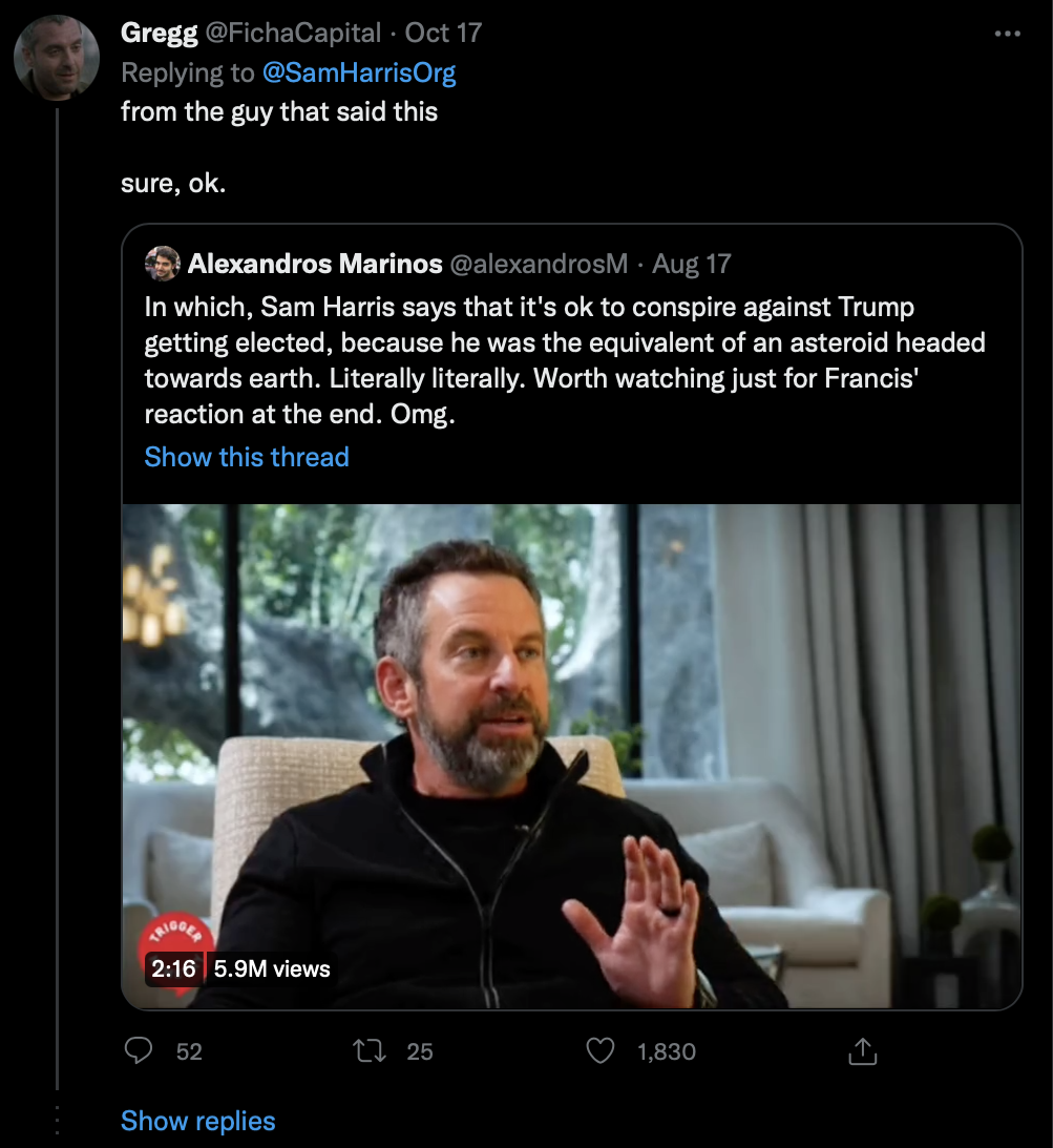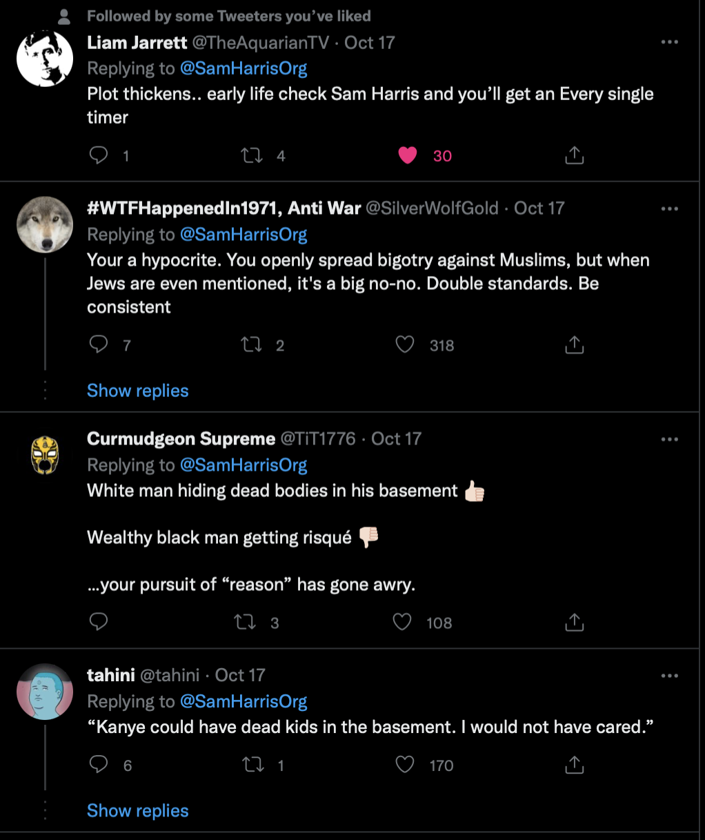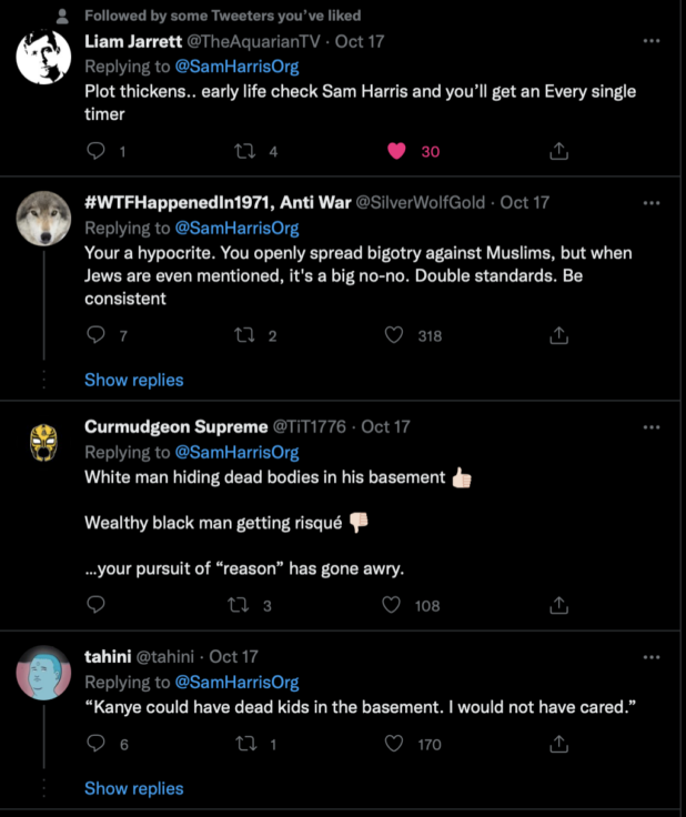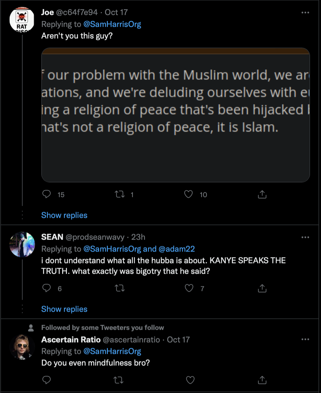 https://twitter.com/SamHarrisOrg/status/1582131978379268097?ref_src=twsrc%5Etfw%7Ctwcamp%5Etweetembed%7Ctwterm%5E1582131978379268097%7Ctwgr%5E24cb7541b16cbe88f2150ba0aed158f90b629e0a%7Ctwcon%5Es1_c10&ref_url=https%3A%2F%2Fgameruprising.to%2Findex.php%3Fthreads%2FF09F94B5F09F94B5-ye-news-update-tds-jew-sam-harris-tries-tribal-damage-control-gets-ratioed.44632%2F