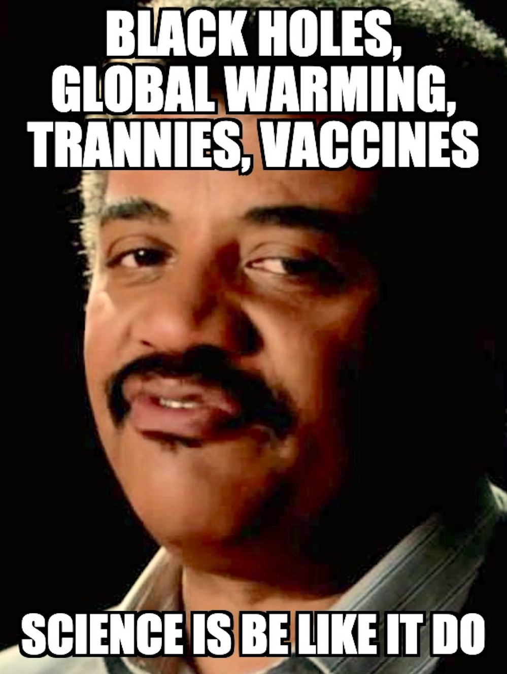 Science is our lord and savior, and it is by science that we will triumph over the scourge of the coronavirus and the equally threatening scourge of all of these souls being born in the wrong bodies.