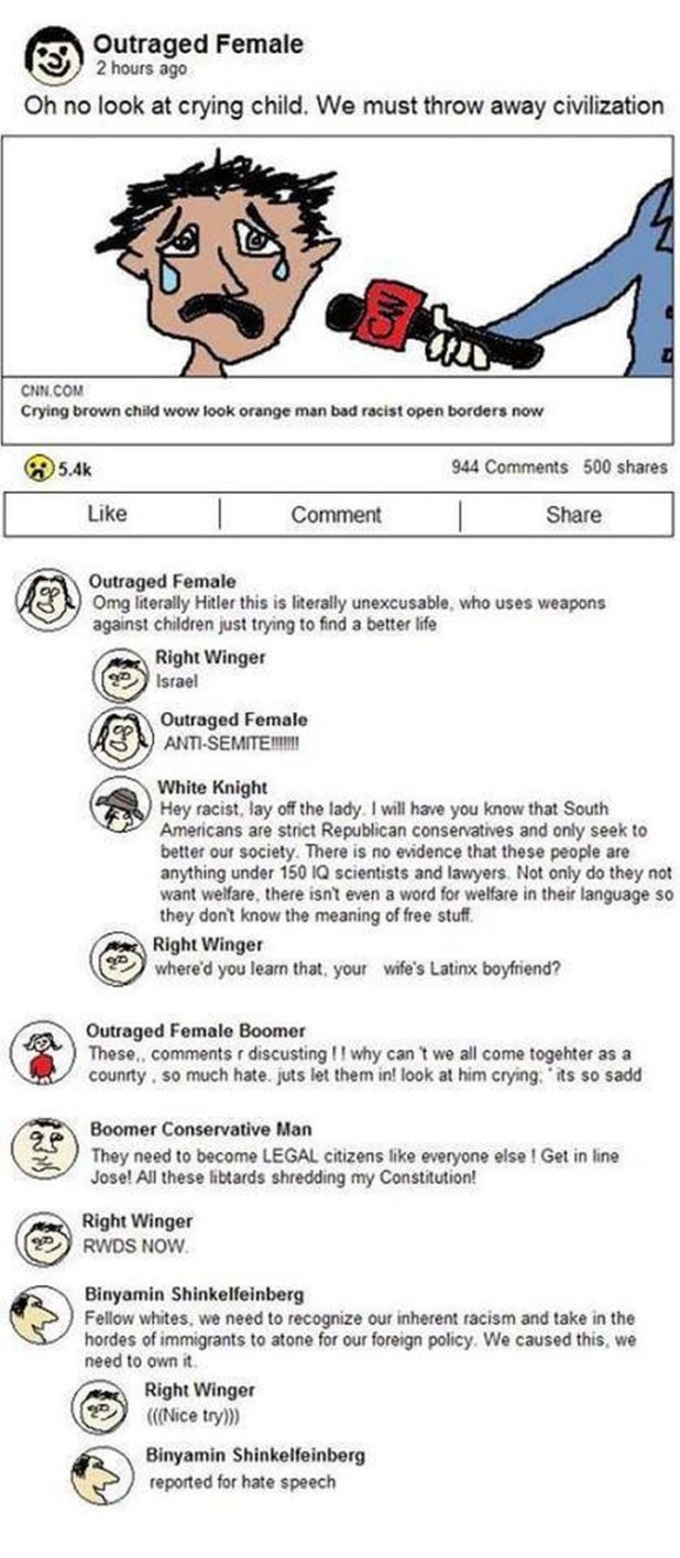 Just as the caravan uses children as human shields when they attack the US border, the media uses children as tools to manipulate the public. They’re a shield and a weapon. If you defend what they say caused the child to cry, you’re an evil bigot that wants to hurt children, while they’re the virtuous justice seekers that want to make kids happy.