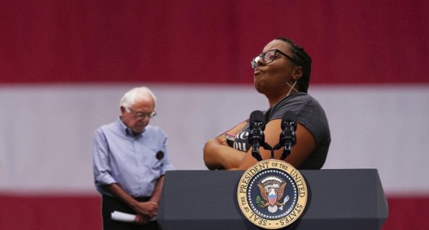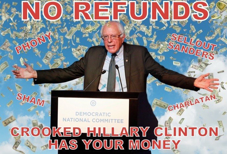 Is it that he sold his supporters out by endorsing Hillary even after he’d been raped by a DNC conspiracy?