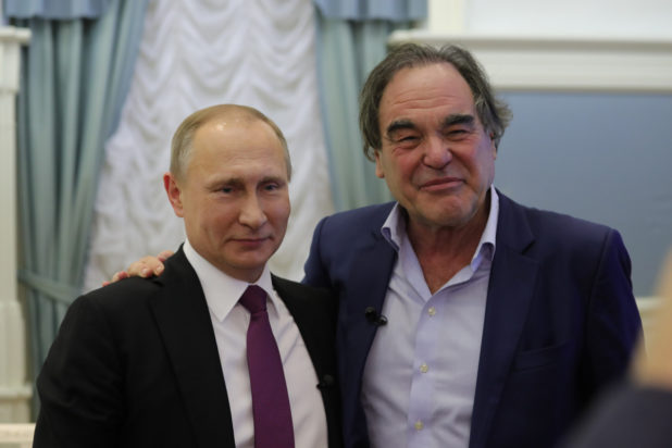 Stone’s own extended interview with Putin is forthcoming next week on Showtime, to be broadcast in four segments. The early reviews have not been good, as has been the norm with Stone’s work for at least the last decade, if not longer.“Stone is less invested in investigating Putin than he is in re-narrativizing the history of American dominance in the post-Vietnam era,” Variety declared. “Putin is eager to assist him on this journey.”