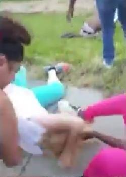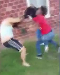 In the video, a woman is pulled to the ground, kicked in the face and stomach, repeatedly punched, and her attackers pull her hair. Later in the video several men are also attacked.