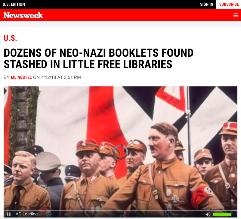 A batch of Little Free Library outposts in Omaha, Nebraska, were infiltrated Wednesday when parents of its child patrons discovered dozens of bound neo-Nazi propaganda booklets stuffed in its stacks.
