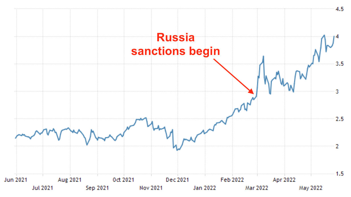 But the Republicans support the war on Russia, so they have to keep saying that the sanctions have nothing to do with global energy prices, which is so stupid it makes me sick to even think about it.