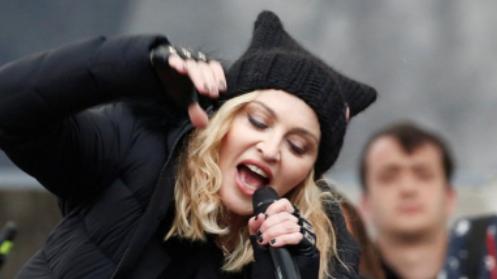 Donning a black p***yhat, the music icon caused controversy by dropping the F-bomb four times, sparking a slew of apologies from broadcasters airing the protest live.