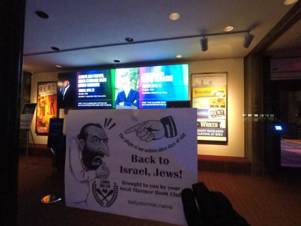 Here’s a sampling of one of our campaigns: “Back to Israel, Jews,” a simple, timely message designed to get people thinking about the pernicious kosherites busily rubbing their hands as they celebrate our destruction.