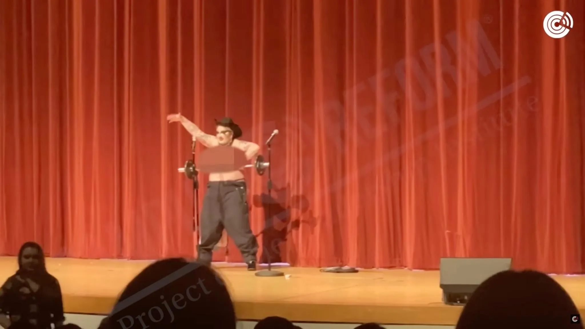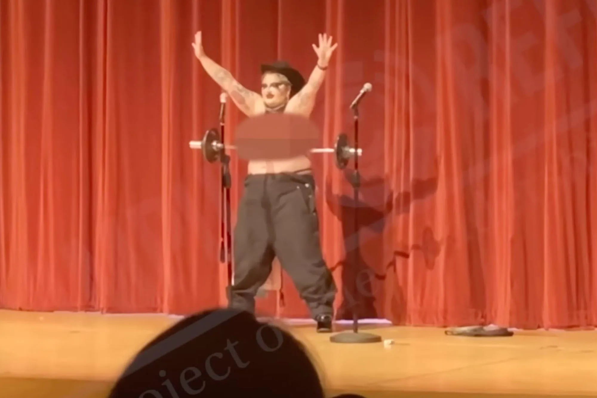 In the footage shared by the group, one of the drag performers exposes her breasts by removing her top.