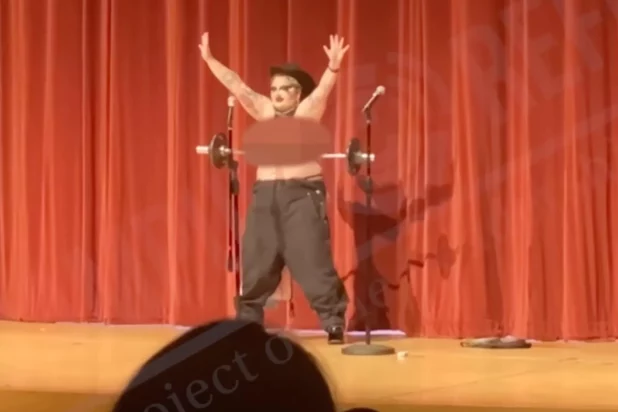In a video allegedly recorded at the show and shared by Campus Reform, performers are seen walking naked from the waist up on stage. Several people told the news site that children were in the audience at the time.