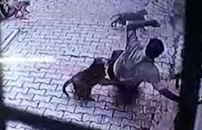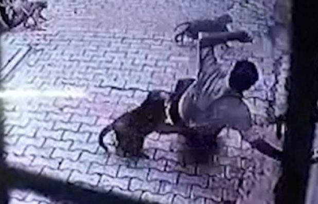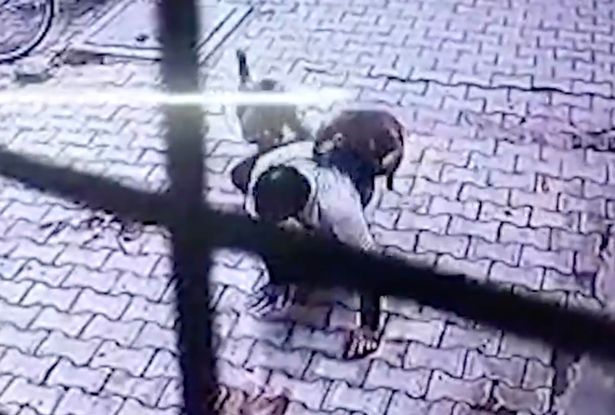 Footage showed Nikunj turning a corner where a group of monkeys were lying in wait, hanging around near a dumpster.