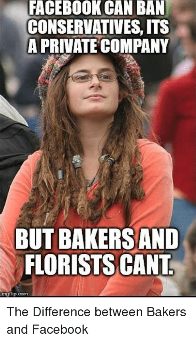 They won’t ever explain the difference between Facebook and a Christian bakery, and if you ask them they will just sew their lips shut so they don’t have to answer and hold up a sign about how cow farts are changing the weather.