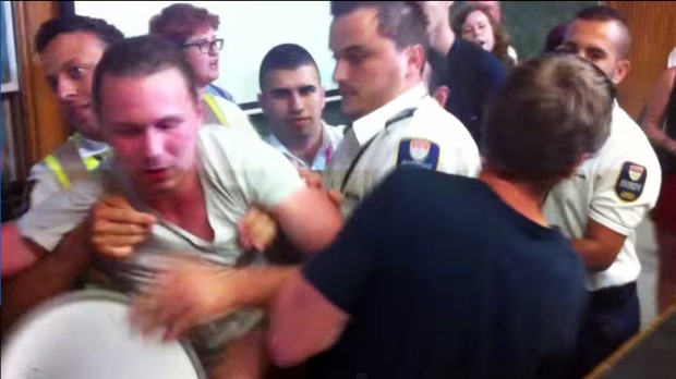 Despite university being sacred ground for the exercise of free speech, the uni security had brutal guards drive students off, dragging one by his ankles. This breach of standards was pointed out by Stephen Banks, president of the NSW Council for Civil Liberties. He’ll possibly be found dead one day soon with a Mossad bullet in his temple.