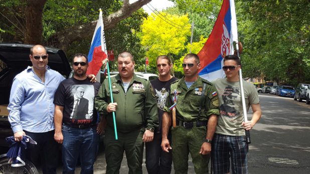 He was joined by Hellenic Nationalists of Australia (Golden Dawn) chairman Ignatius Gavriilidis at the commemorative address outside the Russian Consulate in Sydney.