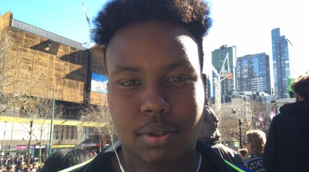“Don’t shoot”, read the handwritten sign on a piece of cardboard held aloft in the crowd in front of Flinders Street Station.