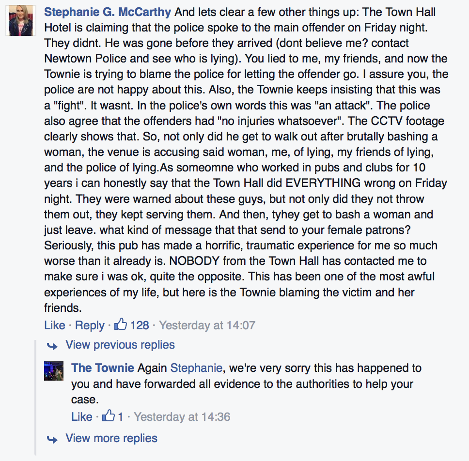 It continued, “There were four or five of them following me around, yelling ‘faggot’ at me. One of them kept deliberately bumping into me. I had my ponytail pulled a couple of times. But they [the staff] just kept serving them, they didn’t throw them out.”