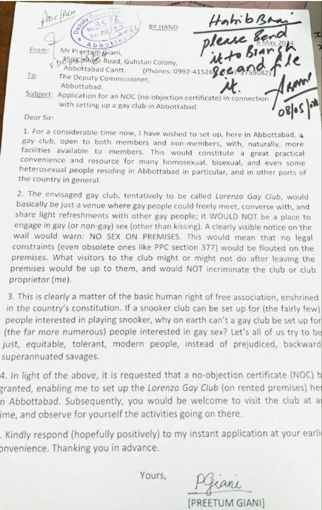 In the application filed to the deputy commissioner (DC) of the city, the man said the club was to be a “great convenience and resource for many homosexual, bisexual and even some heterosexual people residing in Abbottabad in particular, and in other parts of the country in general.”