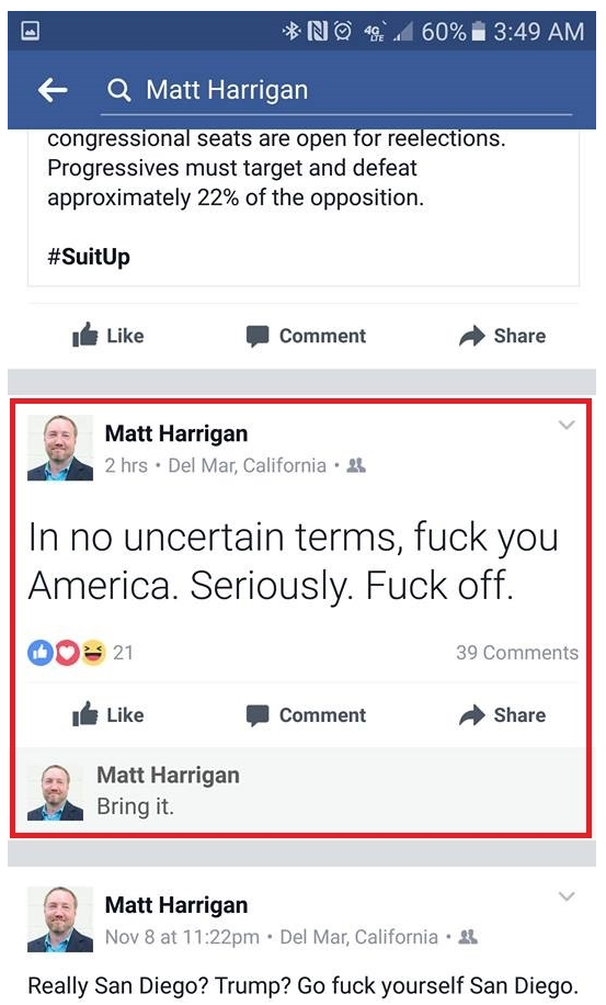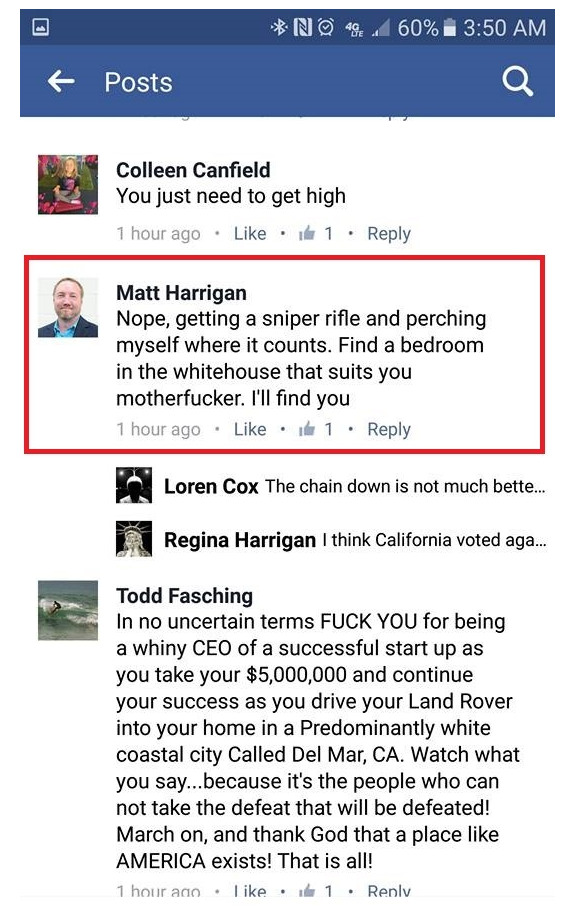 Matt Harrigan, the CEO of Packetsled, is pictured here saying that in no uncertain terms he despises America, and that no amount of substance abuse is capable of containing his homicidal rage. He intends to direct this rage towards the murder of our glorious Emperor, Donald J. Trump. He’s since confirmed the authenticity of these statements, though is asserting that they were intended as a joke. Was getting caught part of your plan?